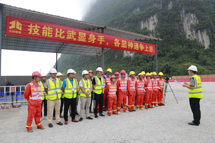 9月10日—11日,自治區企事業工會和北投集團工會共同聯合舉辦“當好主人翁 建功新時代”慶祝新中國成立70周年“北投工匠”職業技能競賽。競賽由新發展集團、羅城縣人民政府承辦,賽場設于正在建設中的融水至河池高速公路?;顒游吮蓖都瘓F高速公路建設項目的10個參建單位共132名基層作業人員同臺競技。